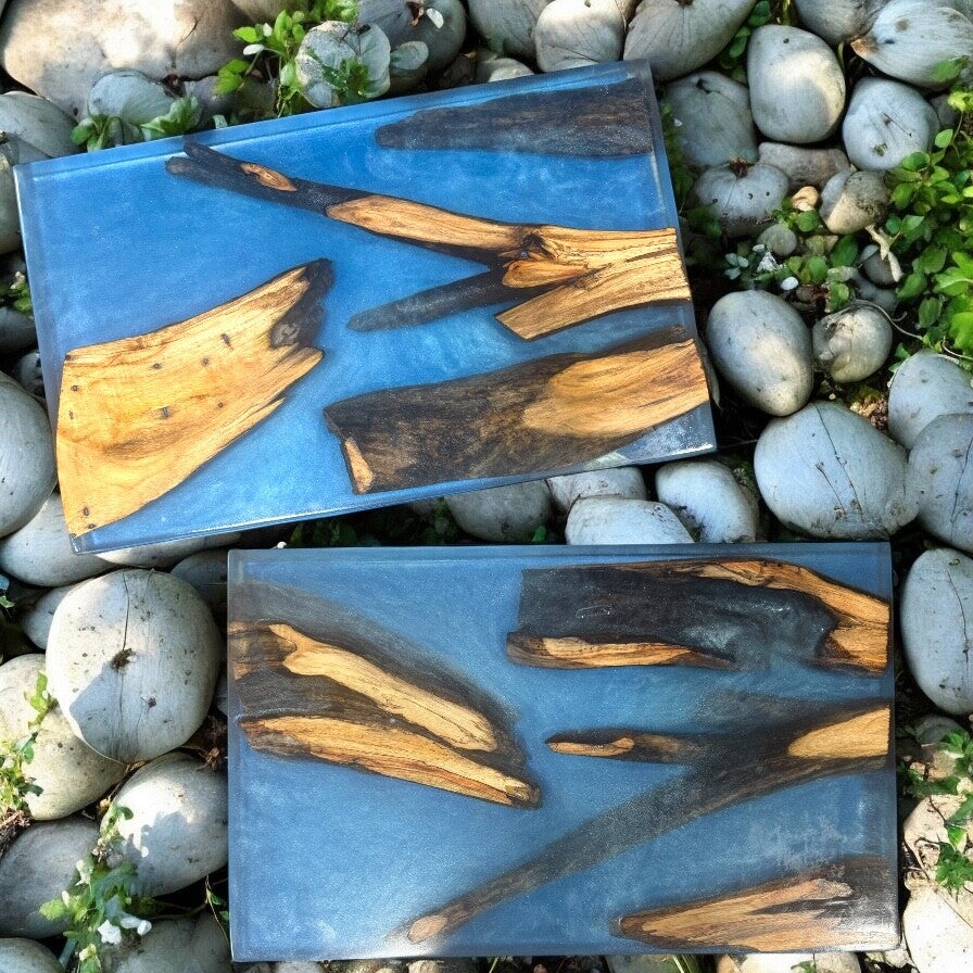 The board showcased above is meticulously handcrafted from driftwood collected from the stunning Mohawk River in upstate New York. It is encased in deep epoxy, preserving its natural beauty for generations to come.